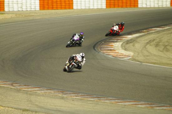 Le groupe de tête va très vite, il commence à me distancer dès les premiers tours mais avec des « lièvres » devant moi, je ne me pose pas de question ! Le sabot frotte dans le virage du pont puis c’est ma botte et le repose pied (coupé de la moitié de sa longueur) qui frottent dans le virage de la Carierasse mais les suspensions répondent très bien ! Le miracle des réglages de suspension du dimanche matin -cher à Rossi- a fonctionné pour moi ! En revanche, j’ai de plus en plus de mal à voir les points de corde car ma visière est couverte de buée… Je vais faire toute la course en ouvrant ma visière sur la ligne droite des stands et en la refermant juste avant de plonger dans le triple gauche !